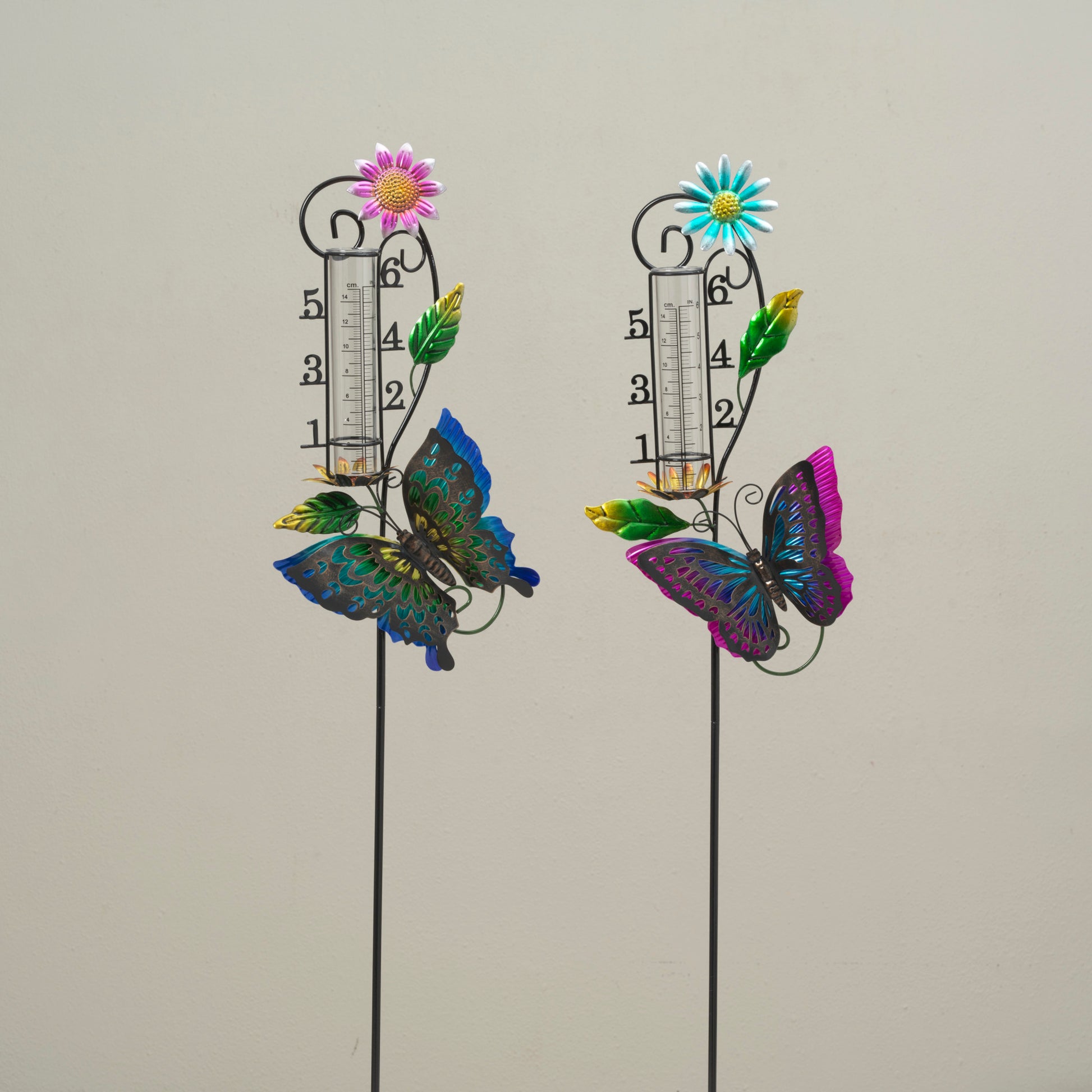 36.22"H Metal Butterfly Yard Stake w/ Rain Gauge